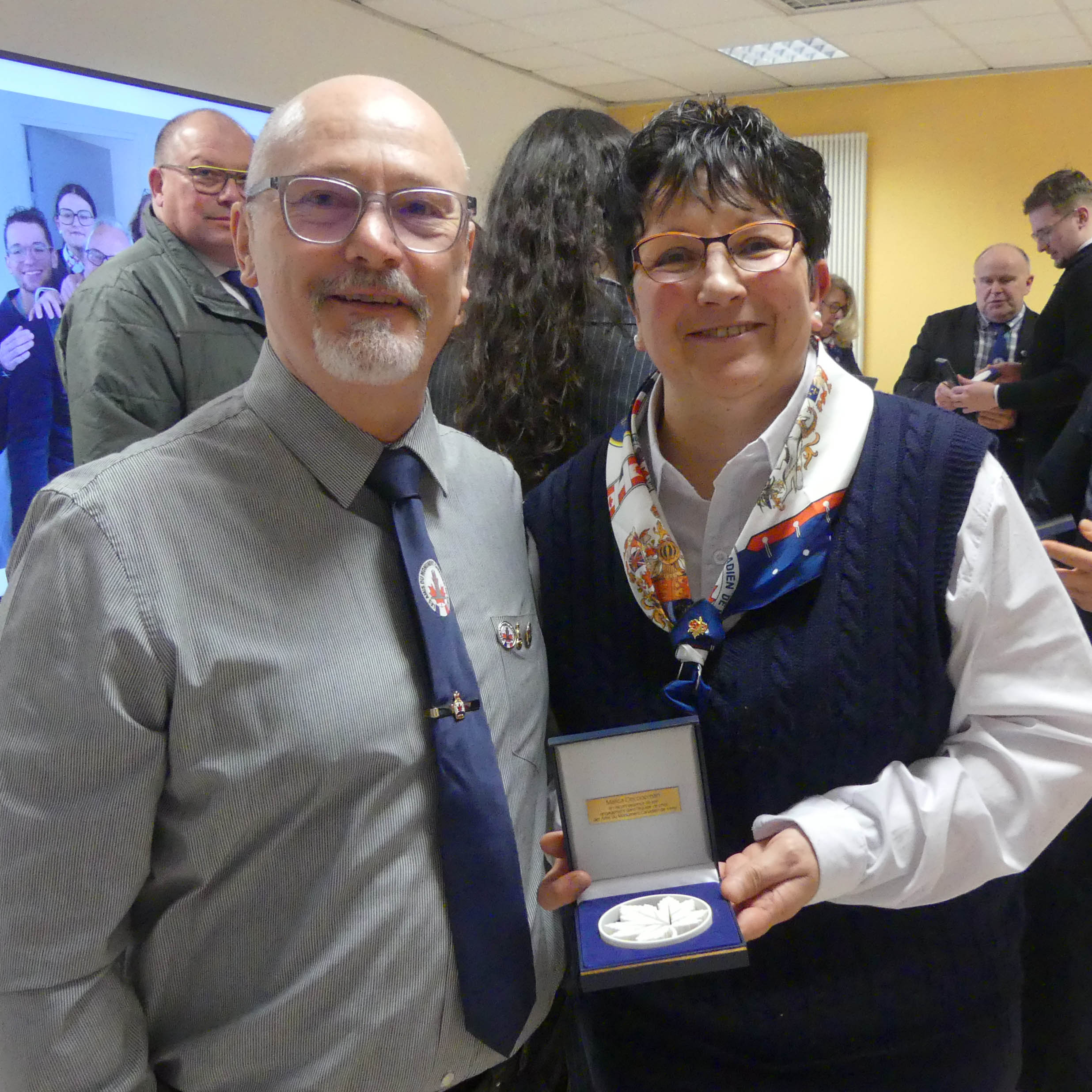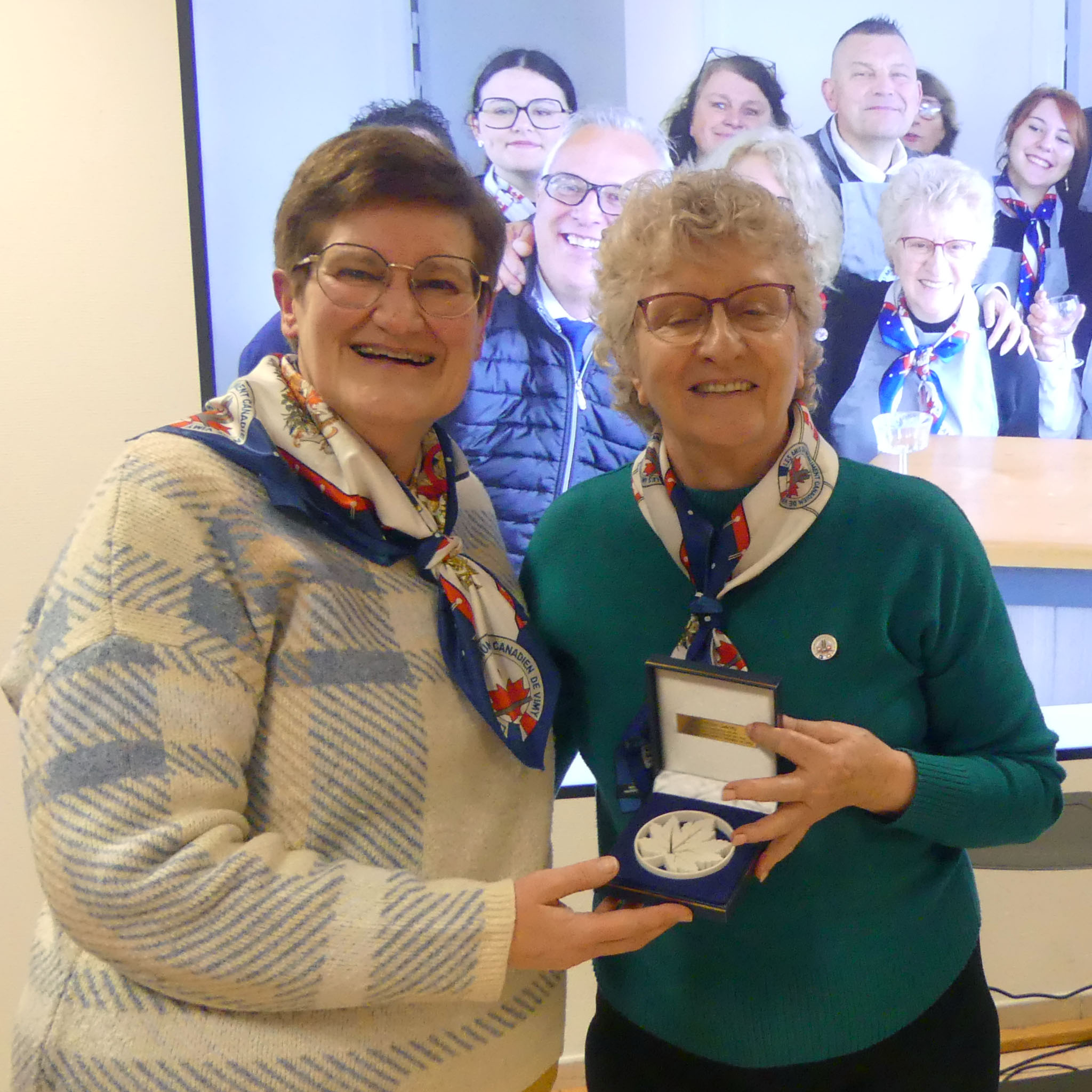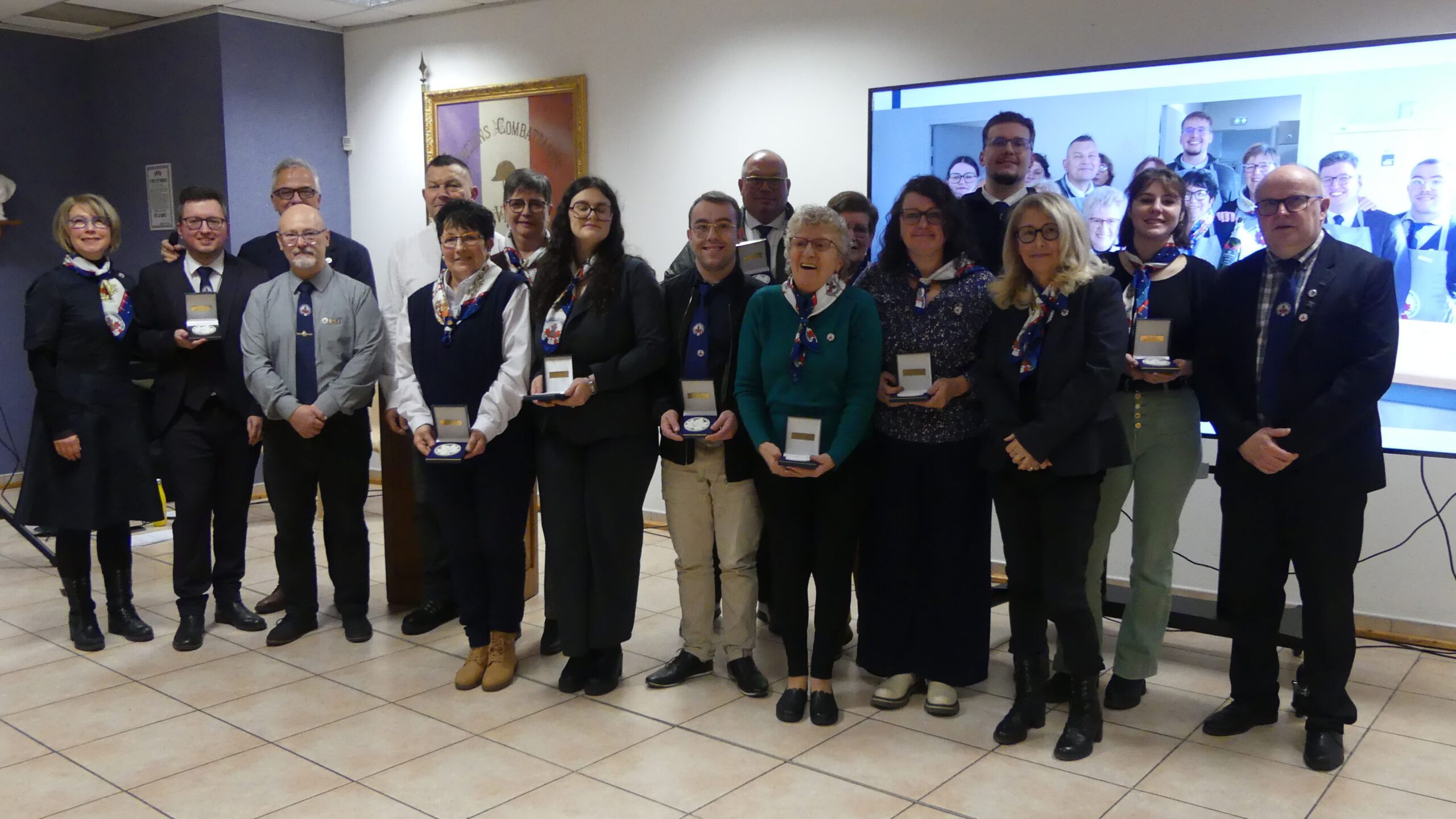 La soirée s’est poursuivie par la remise des insignes de sociétaires aux nouveaux adhérents présents dans la salle, dont messieurs les maires de Vimy et de Thélus. Un moment de reconnaissance a suivi, dédié à notre fidèle « équipe de choc », chaleureusement remerciée pour son engagement lors des réceptions et événements organisés tout au long de l’année.