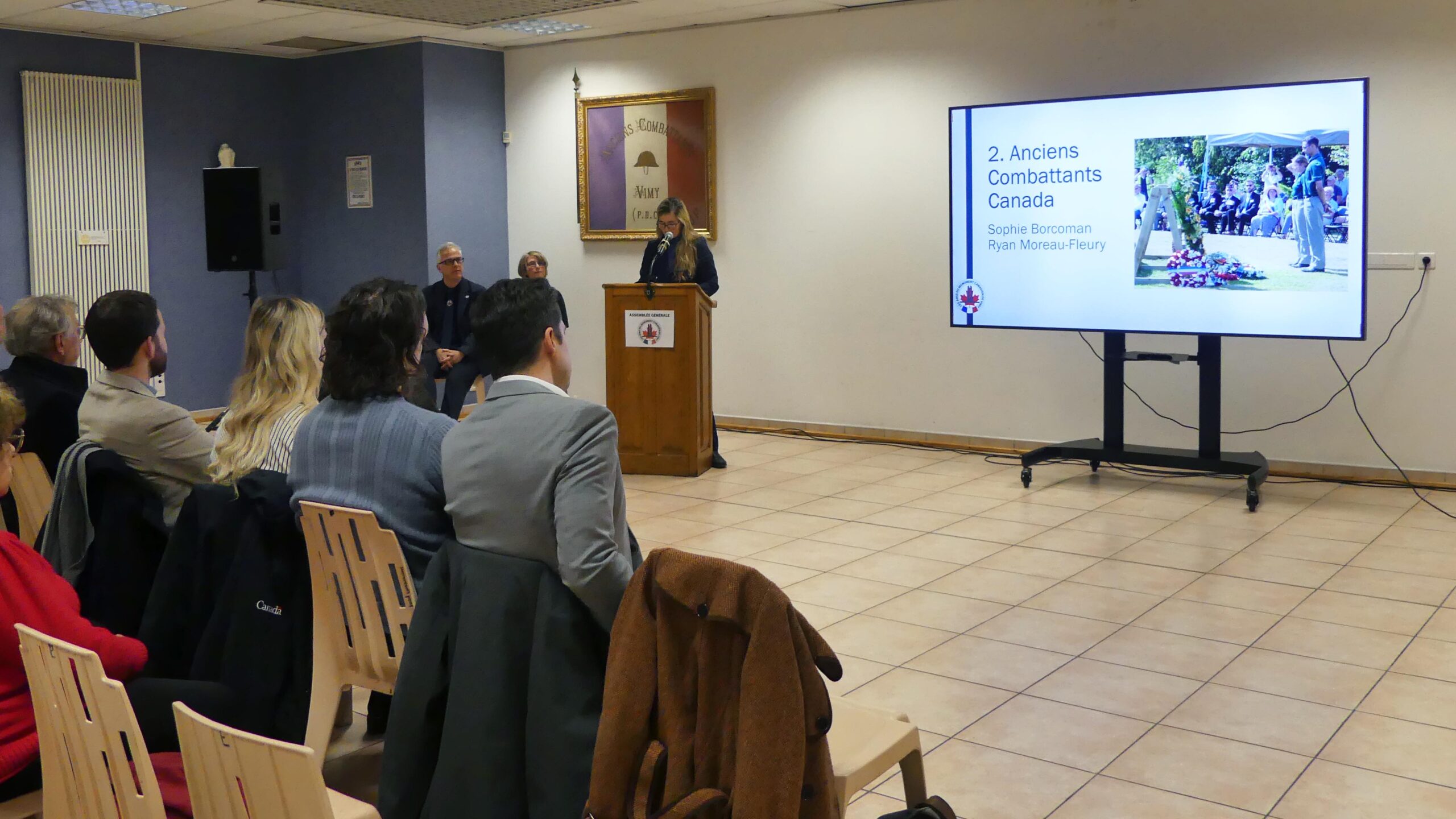 En introduction, Sophie Borcoman, représentante d’Anciens Combattants Canada, a pris la parole afin de réaffirmer le soutien de son institution à nos activités et d’adresser ses remerciements pour le travail accompli par l’association.